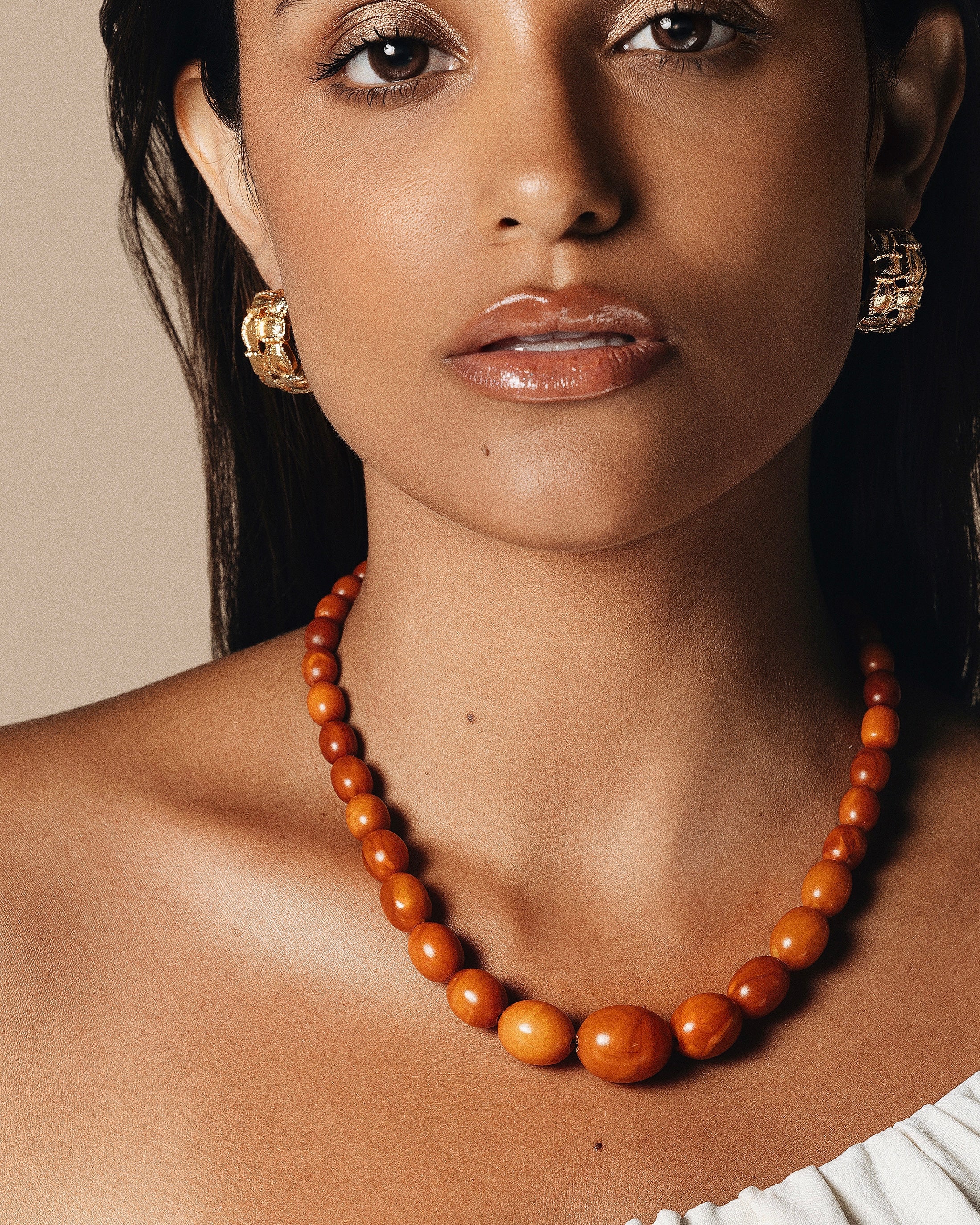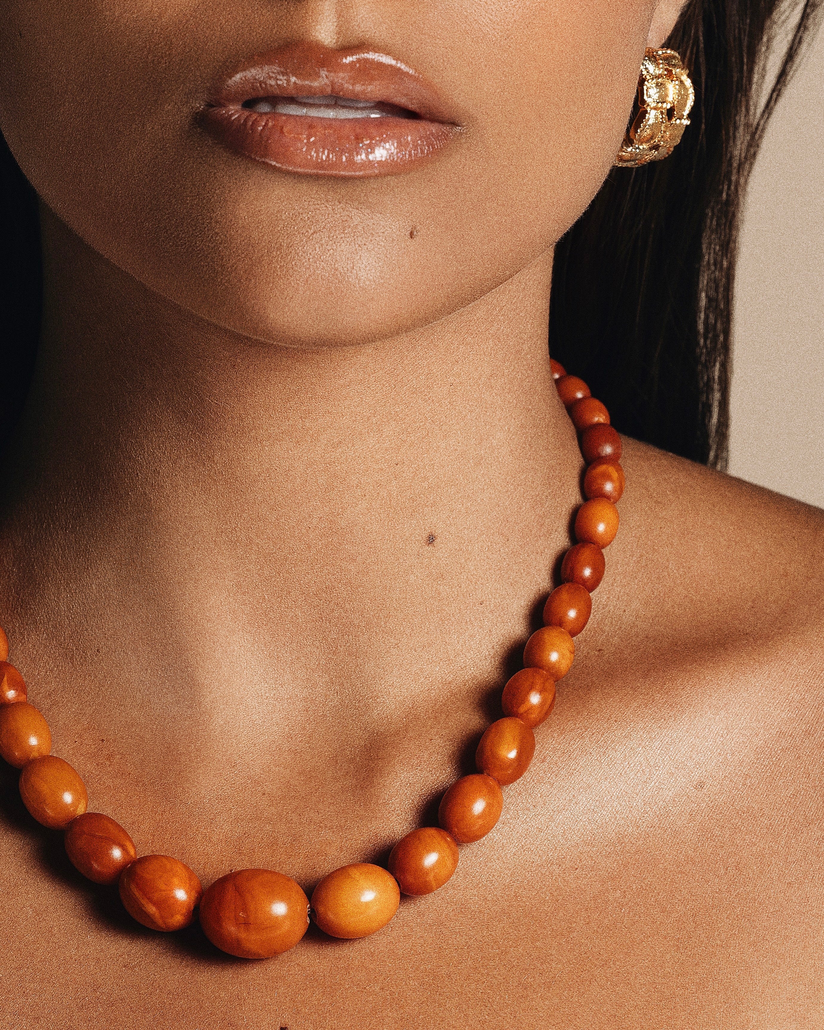 The necklace is elegantly finished with an 18K gold clasp, adding a touch of sophistication and complementing the amber’s natural color. Perfect for lovers of vintage jewelry, this timeless piece embodies elegance and the beauty of nature, making it an exquisite addition to any collection.