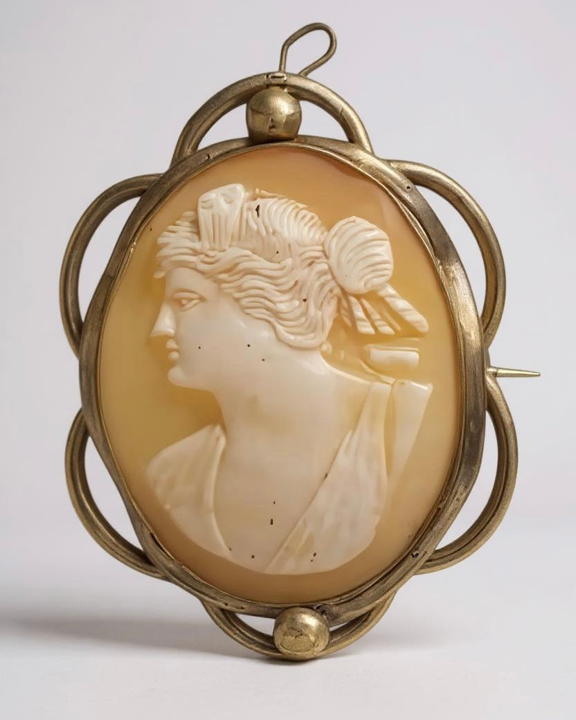 Cameos have been cherished since ancient times, but they reached peak popularity in the Victorian era, often used to portray romanticized female figures. This piece likely dates to the mid-20th century, when cameo brooches made a stylish comeback as elegant accessories for formal and everyday wear.