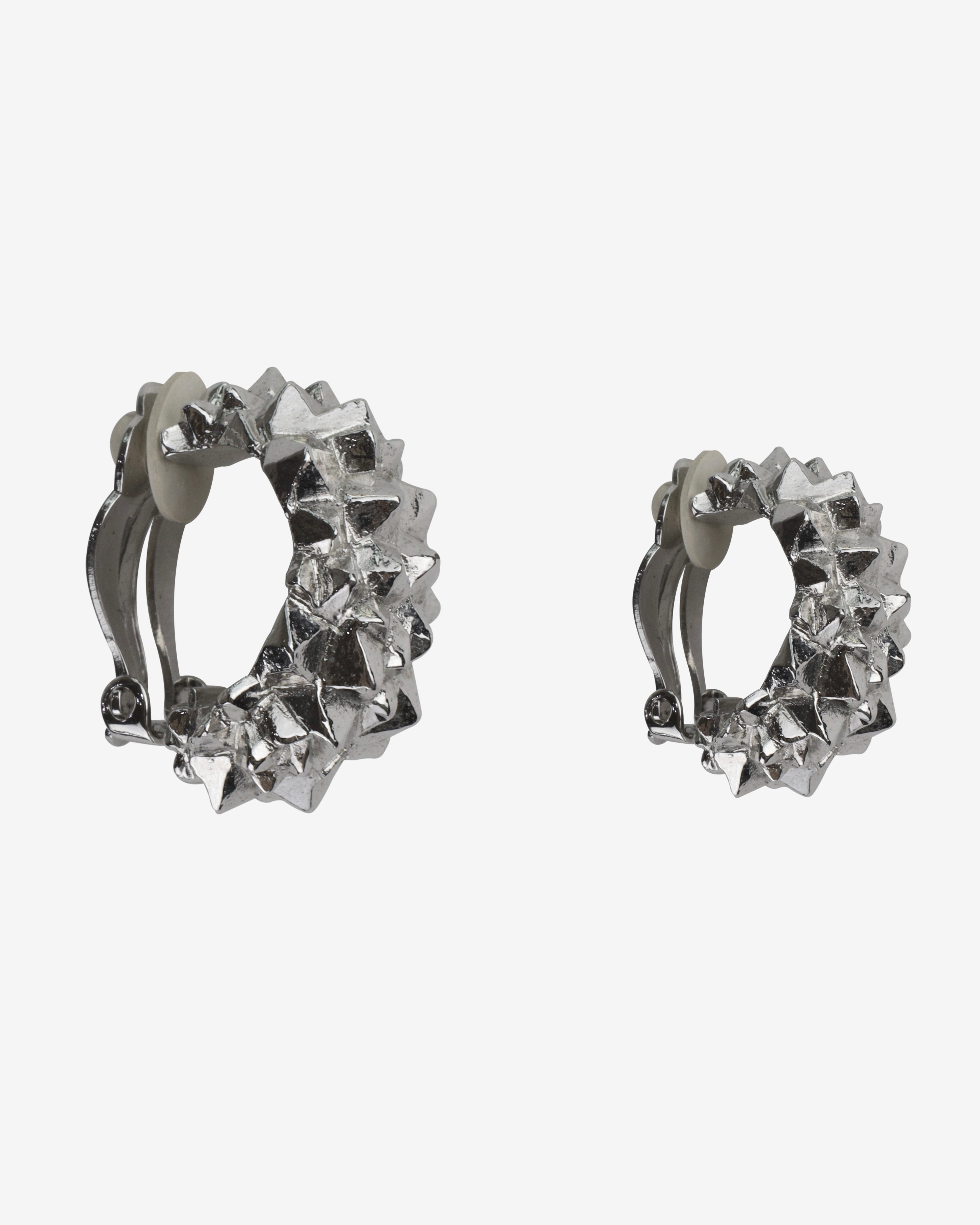 c.1980, Chunky Irregular Hoop Rhodium-Plated Clip-On Earrings