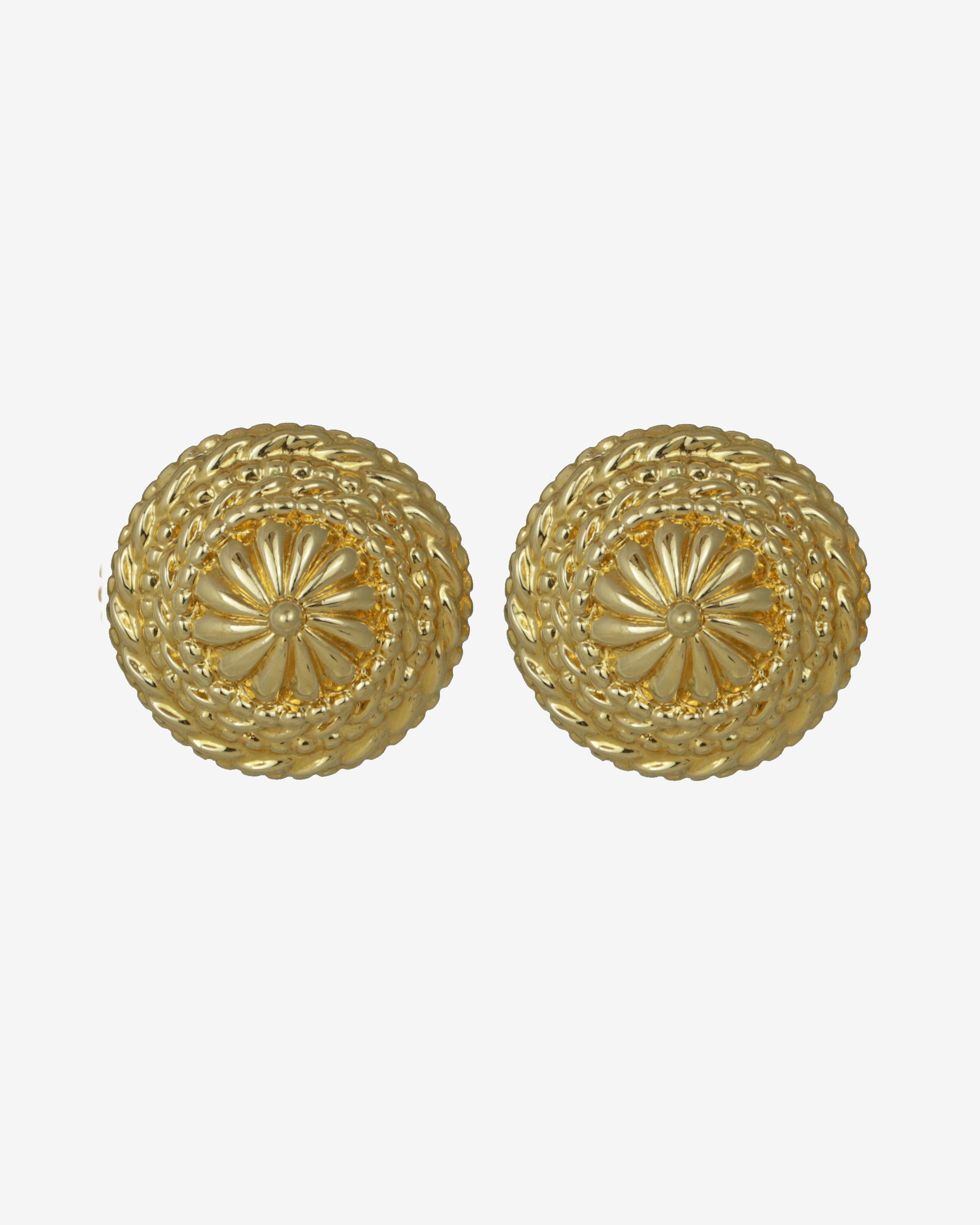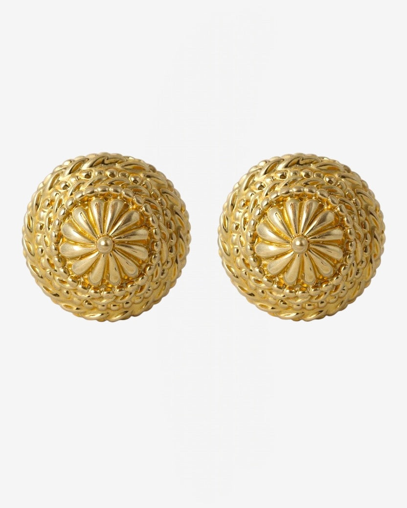 These classic vintage Nina Ricci dome earrings from the 1980s exude timeless elegance and sophistication. Crafted in gold-Plated metal, the round design features a beautifully engraved dome centerpiece, encircled by a twisted frame for added texture and depth.