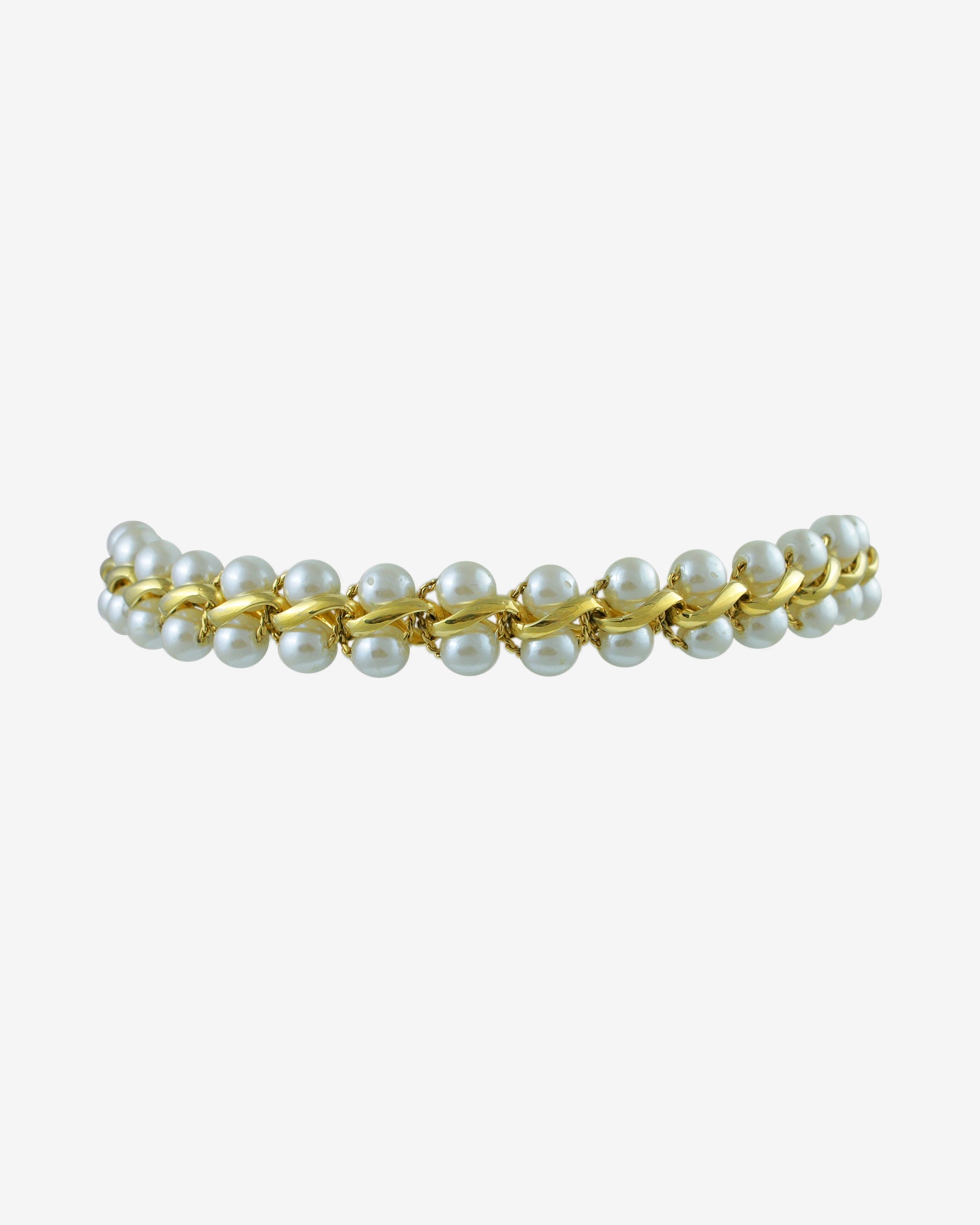 This vintage Napier “Pearl Parade” bracelet is a timeless and elegant piece, featuring a gold-plated setting adorned with luminous faux pearls. Measuring approximately 19 cm (7 1/2 inches) in length, this bracelet showcases classic sophistication, making it a versatile accessory for both everyday wear and special occasions.